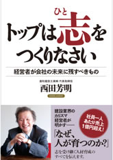 弊社代表・西田芳明にとって建設事業とは、建物を建てて終りではなく、目的は我が社のつくる建物によってそこに住む人の心を豊かにすることです。それにはまず社員に「社会に役立つ立派な人間」になってもらうことが一番大切です。
